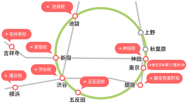 | 横浜校 | 横浜駅北西口より徒歩3分 |